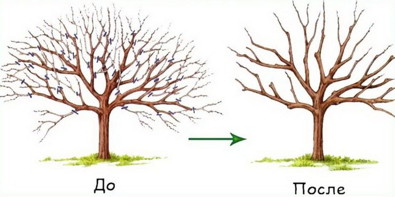 - Если крона чересчур разветвленная, то нужно убирать те побеги, что её загущают.