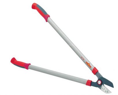 - С наковаленкой – такой секатор выглядит необычно. Его нижнее лезвие чем-то напоминает маленькую плоскую наковальню, а верхнее – острое, рабочее. Оно двигается вниз, по направлению к наковаленке, упираясь в неё. Ветки, при работе с таким секатором, не срезаются, а откалываются. Поэтому применяется этот инструмент для обрезки исключительно твердых сухих веток. Живые побеги можно полностью погубить таким секатором.